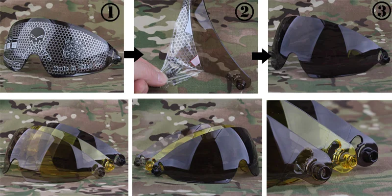 Emerson rápido casco lente fortalecimiento de doble cara + tratamiento antivaho tratamiento de fortalecimiento especial puede resistir la potencia inferior a la pistola BB M140.