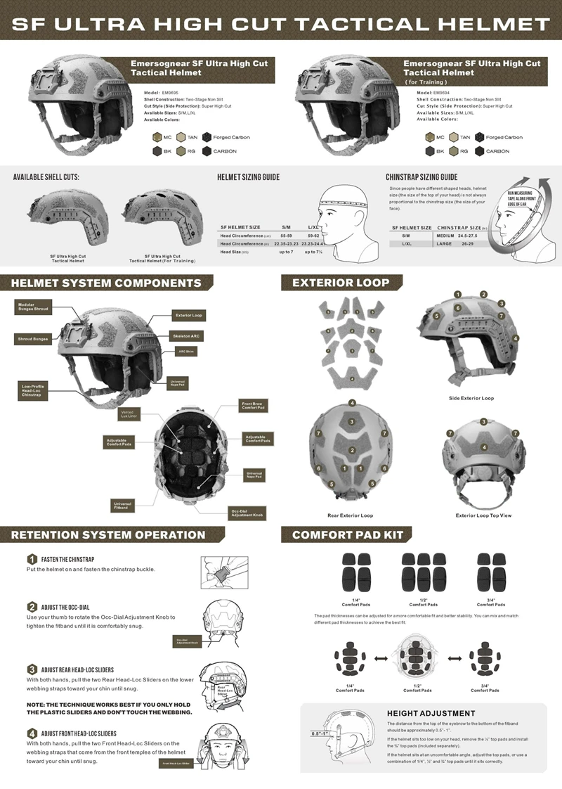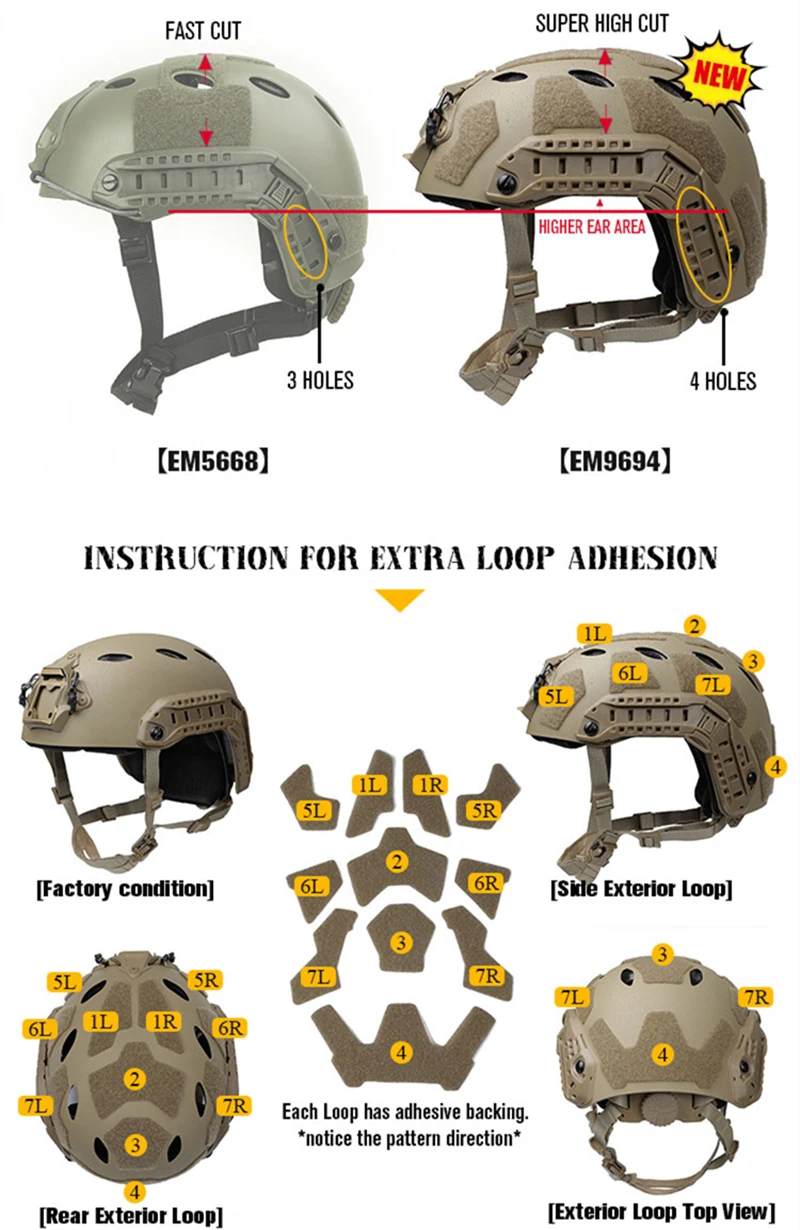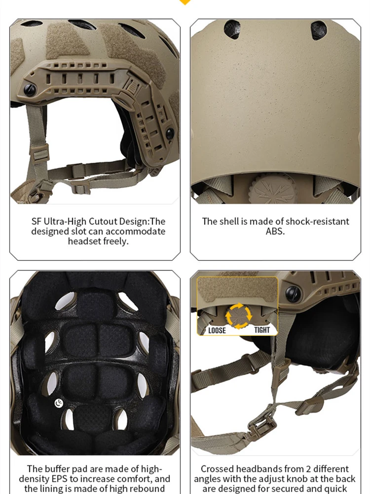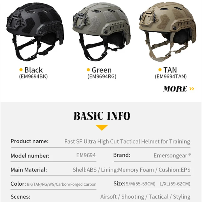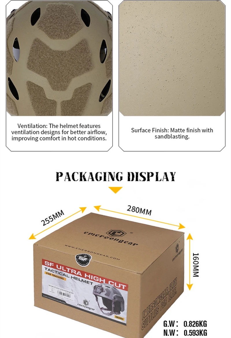 El paquete incluye: 1 casco táctico Emersognear Fast SF de corte ultra alto para entrenamiento