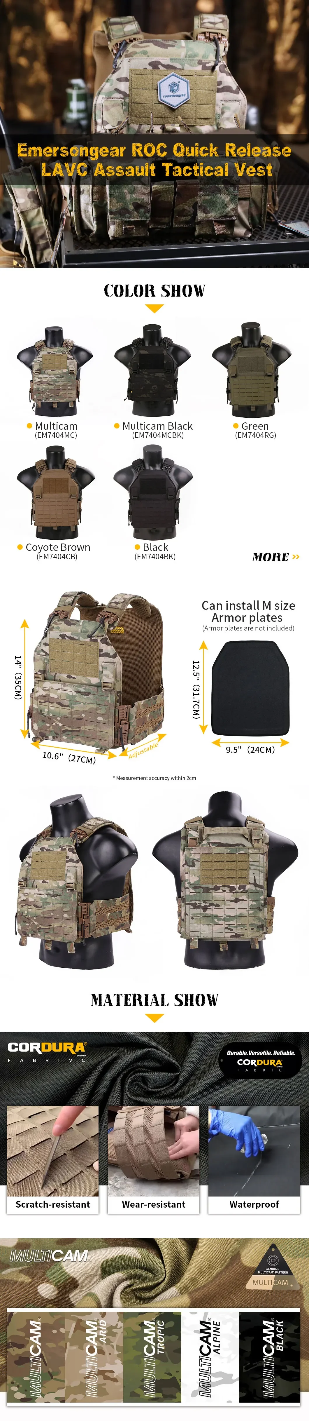 Emersongear LVAC ASSAULT Portador de placa W ROC Chaleco de liberación rápida Molle Armadura corporal Swat Harness Airsoft Gear