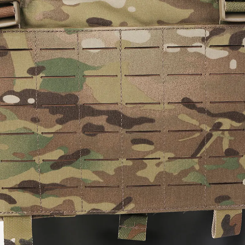 1. MOLLE láser: el sistema MOLLE en los paneles delantero y trasero cancela filas de correas pesadas y adopta la tecnología de corte por láser. Es ligero, por lo que la apariencia es simple y generosa sin afectar la expansibilidad. Todavía puede transportar y combinar equipos personalizados a voluntad.