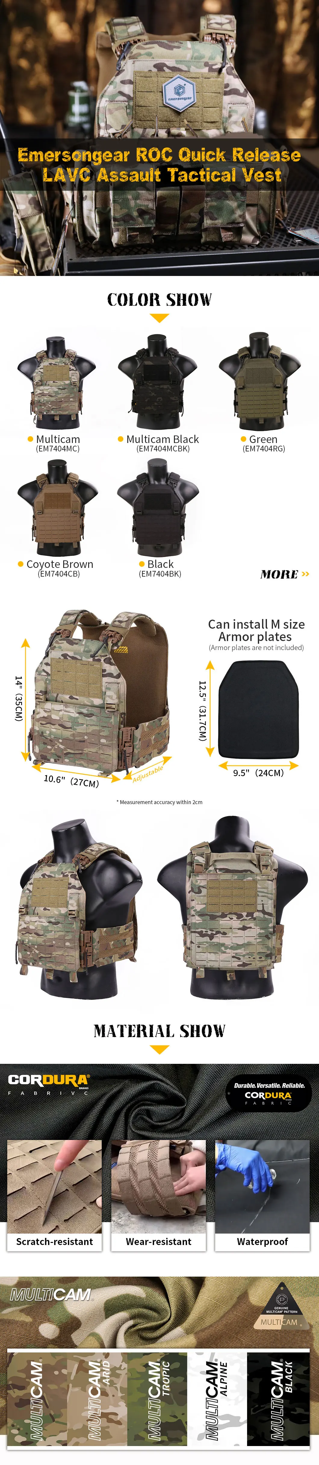 Emersongear LVAC ASSAULT Plate Carrier W ROC Chaleco de liberación rápida Molle Body Armor Swat Harness Airsoft Gear