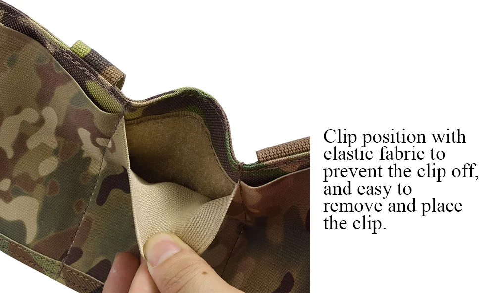1) Posición del Clip con tela elástica para evitar que el clip se apague y sea fácil de quitar y colocar el clip.