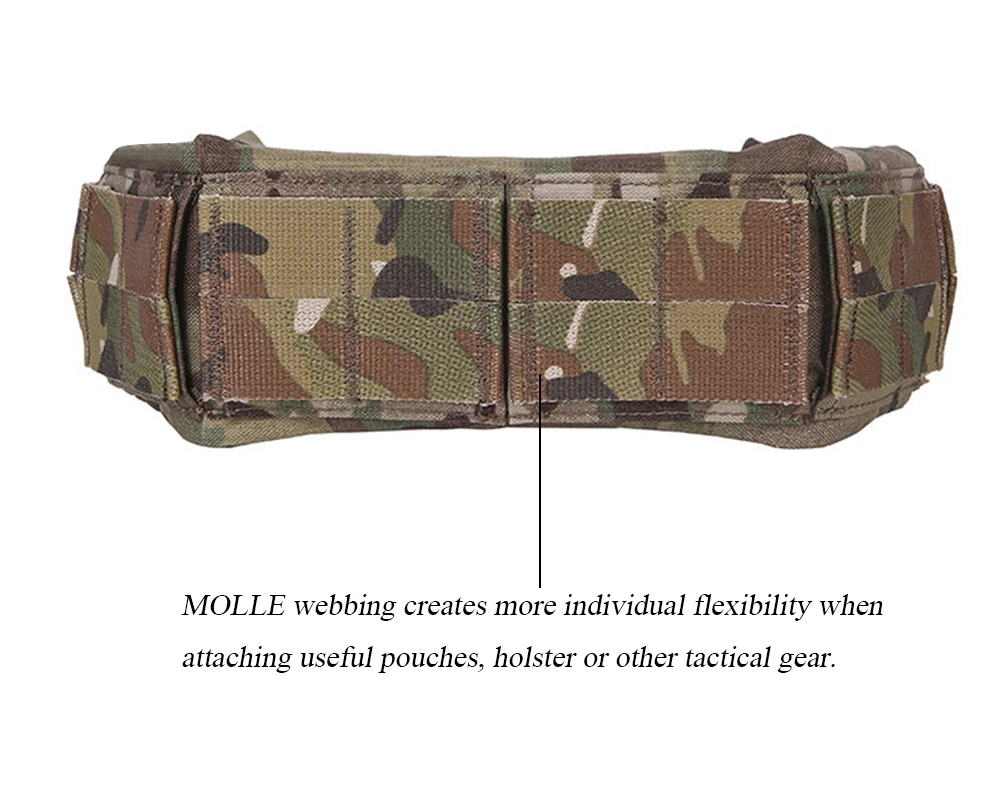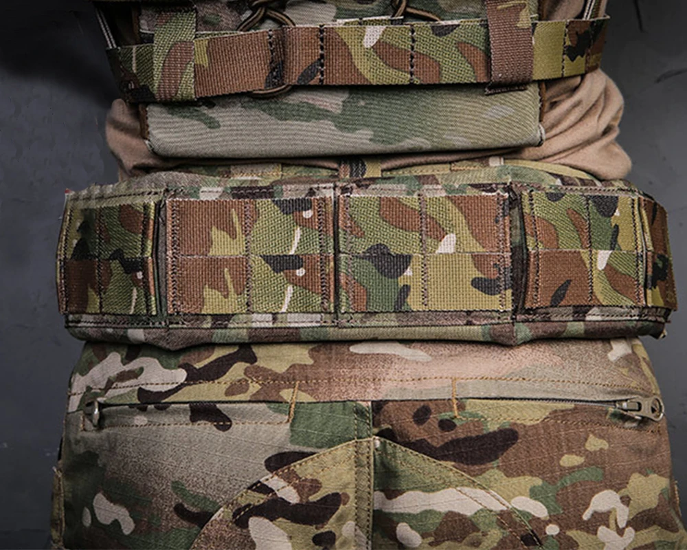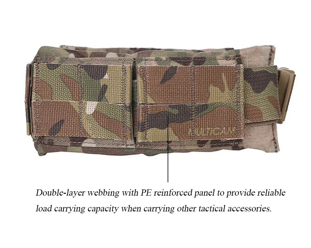 7) Correas de doble capa con panel reforzado con PE para proporcionar una capacidad de carga confiable al transportar otros accesorios tácticos.