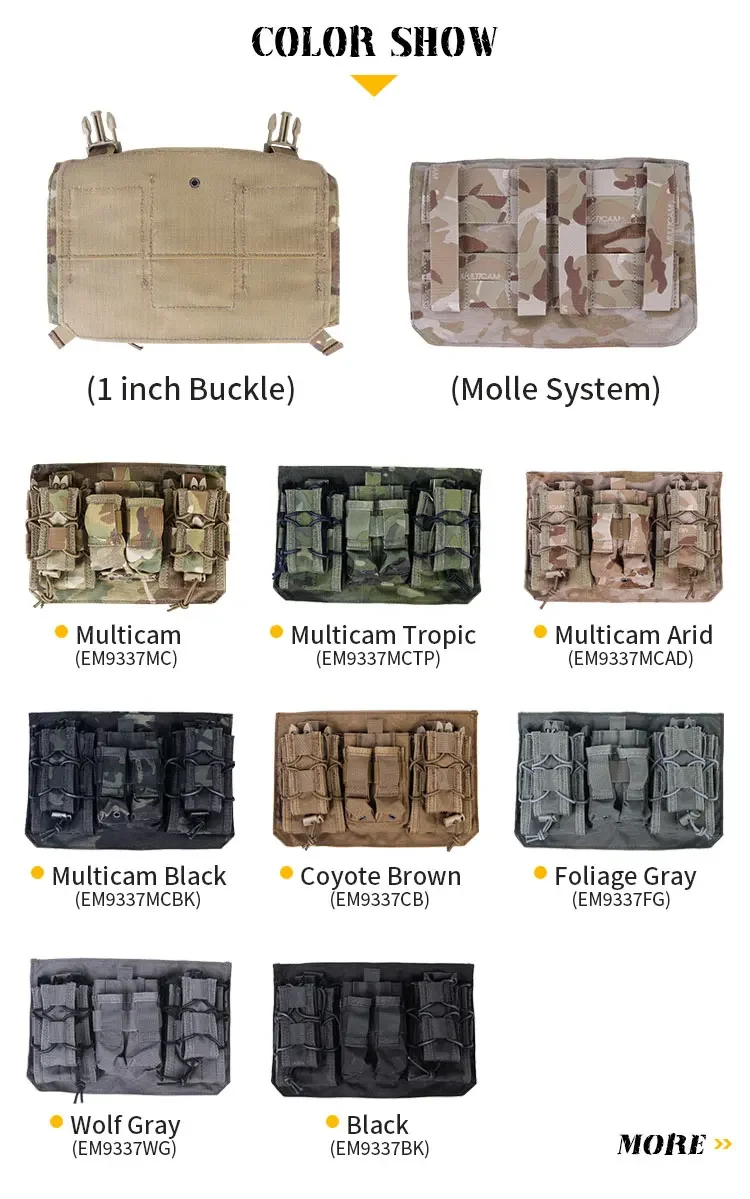 Emersongear 556 Bolsa para revistas de 9 mm Soporte de placa Molle Asastres modulares Panel frontal Pistola Bolsa triple Chaleco de nailon