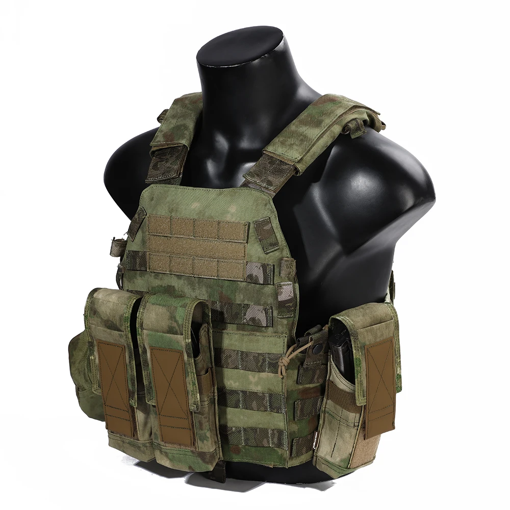 3.Sistema MOLLE: El producto tiene seis filas de correas del sistema MOLLE en la parte posterior, que se pueden combinar estrechamente con chalecos envolventes con el mismo sistema MOLLE.
