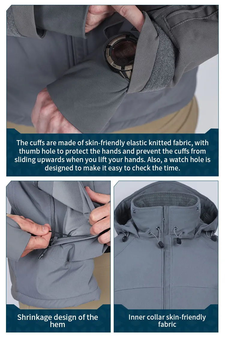 3.El diseño retráctil del dobladillo puede prevenir eficazmente la entrada de viento y mejorar el rendimiento del mantenimiento del calor.