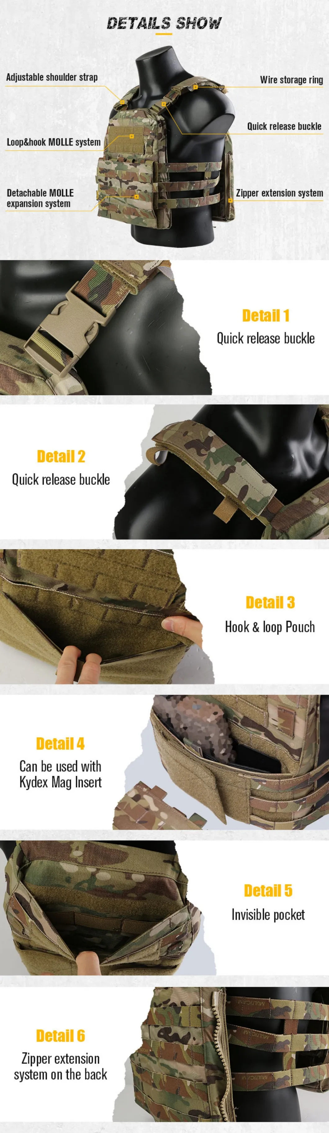 El paquete incluye: 1 chaleco transportador AVS ligero de liberación rápida Emersongear