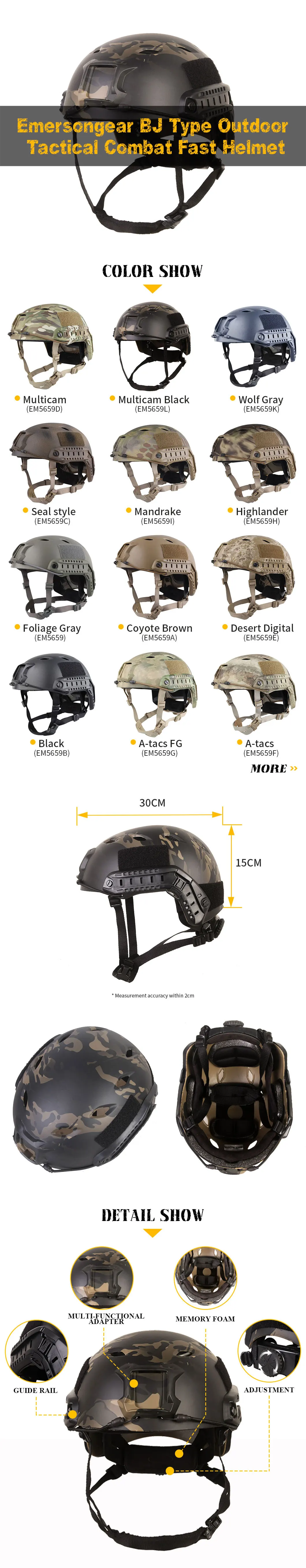 Emersongear BJ tipo casco rápido protector ajustable casco combate caza juego de guerra senderismo ciclismo casco EM5659