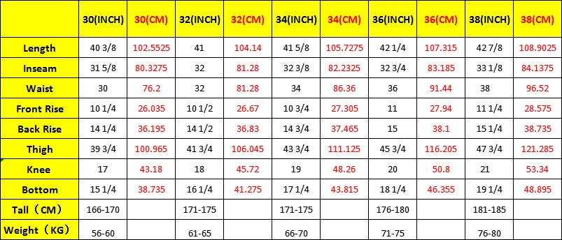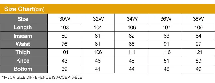 Tamaño: 30W / 32W / 34W / 36W / 38W