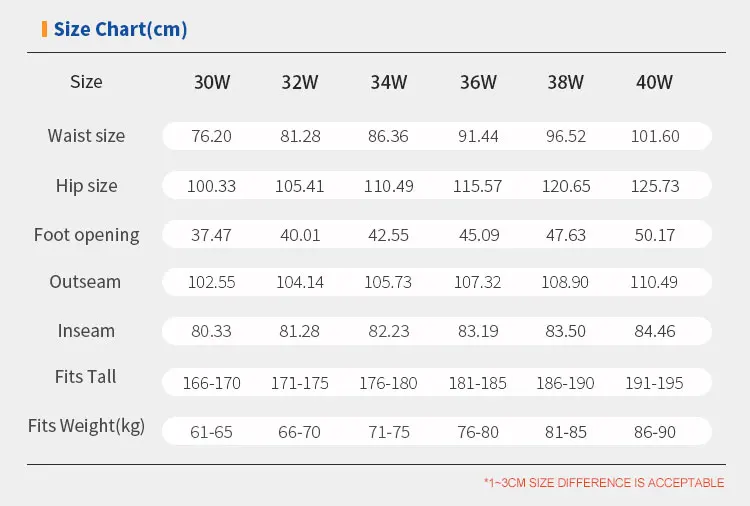 Tamaño: 30W/32W/34W/36W/38W/40W