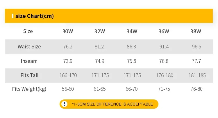 Tamaño: 30W/32W/34W/36W/38W