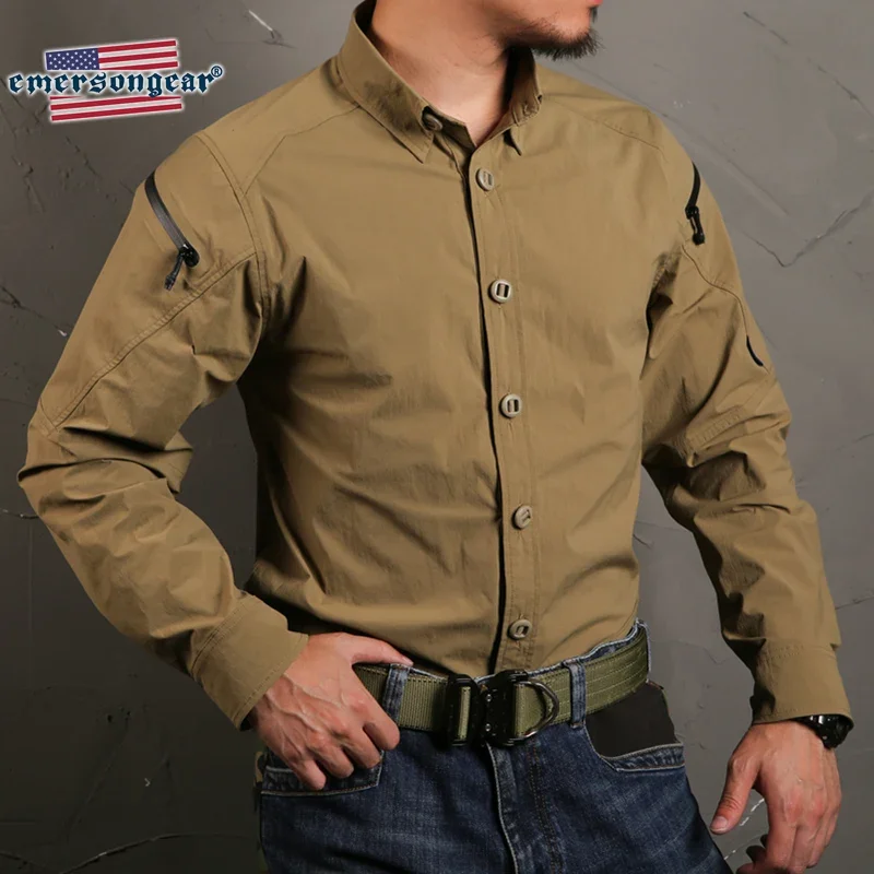 Emersongear-Camiseta táctica para hombre con etiqueta azul, camiseta de triple tecnología estirada para caza al aire libre, camisetas activas de nailon de secado rápido
