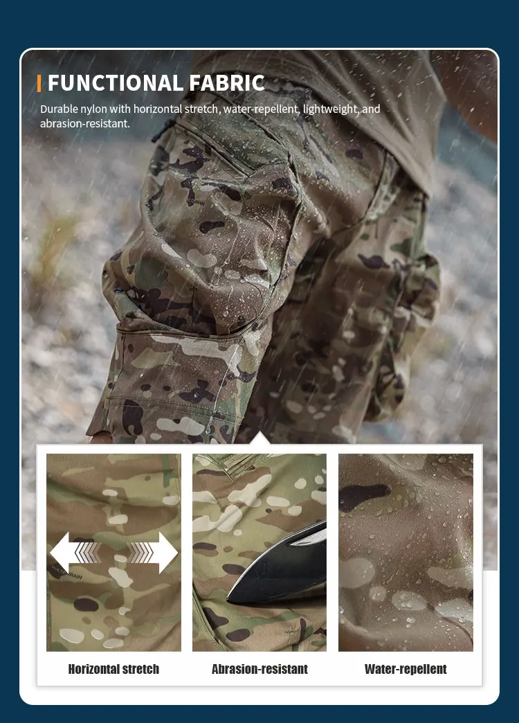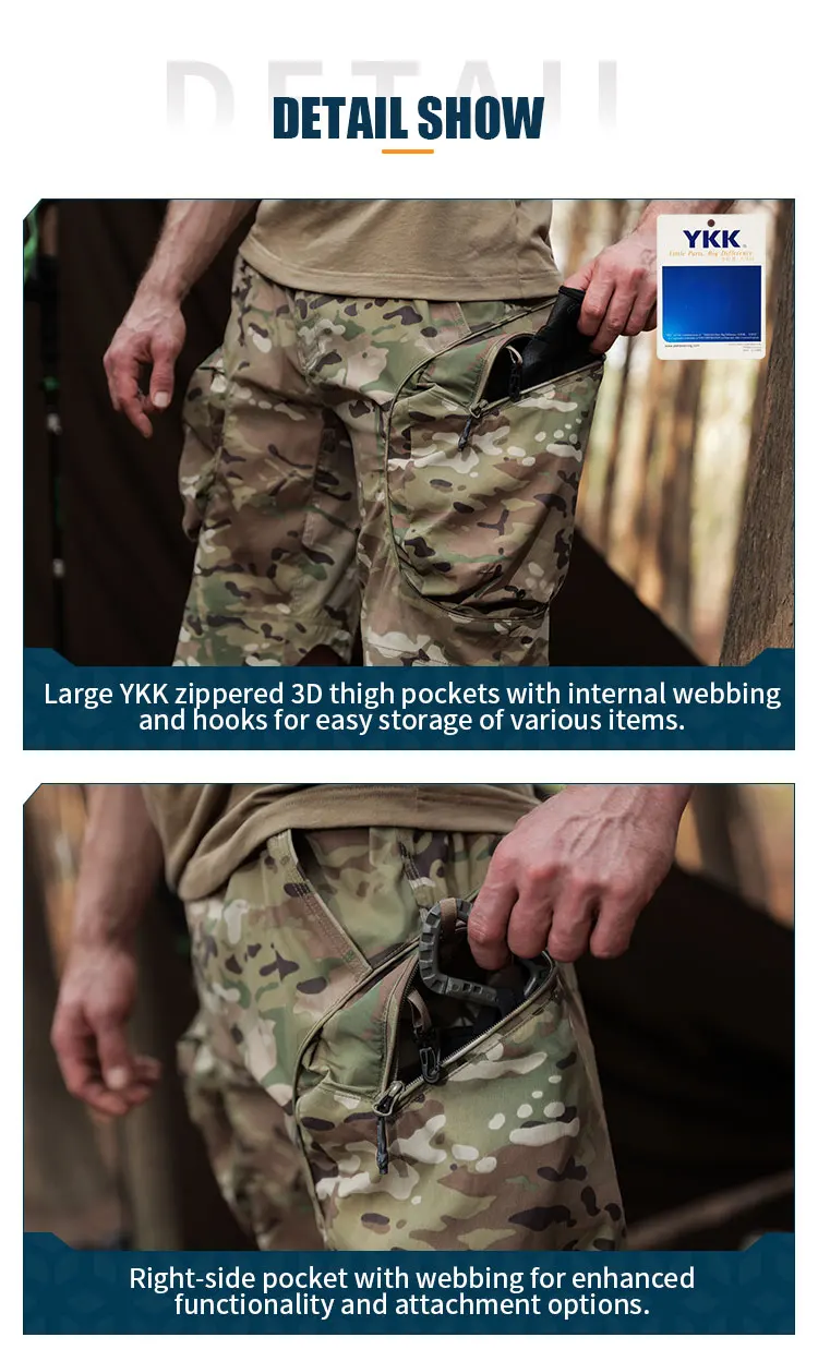 Almacenamiento: Grandes bolsillos en los muslos 3D con cremallera y correas internas y ganchos para guardar fácilmente varios artículos.
