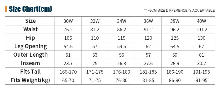 Tamaño: 30W/32W/34W/36W/38W/40W