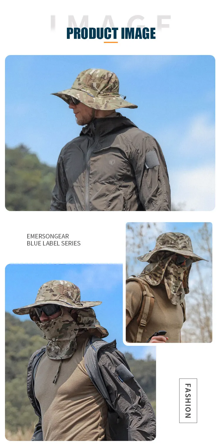 Emersongear BlueLabel, sombrero con volantes para caza al aire libre, Camping, mascarilla desmontable, tapa de Panel trasero, gorros a prueba de sol, nailon