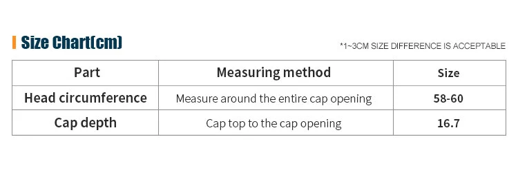 Tamaño (circunferencia de la gorra): 58 cm - 60 cm