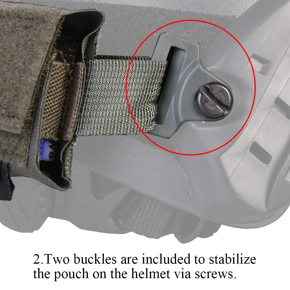 2)Two buckles are included to stabilize the pouch on the helmet via screws.