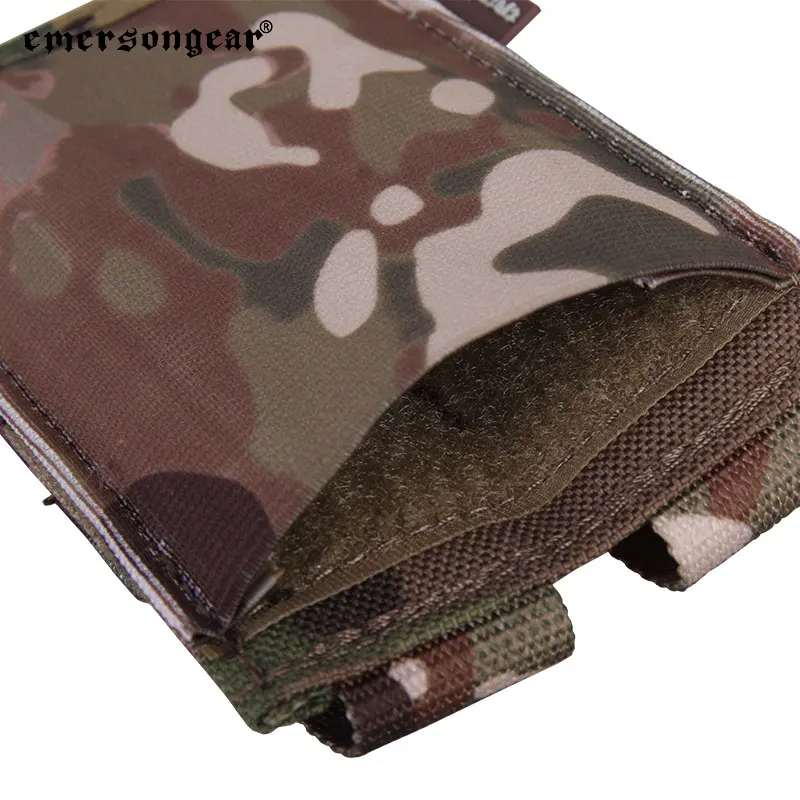 1. La bolsa de revista de un solo enlace de tipo rápido Emersongear está hecha de material de alta resistencia y se fija en el panel frontal del chaleco táctico a través del sistema de expansión Molle.