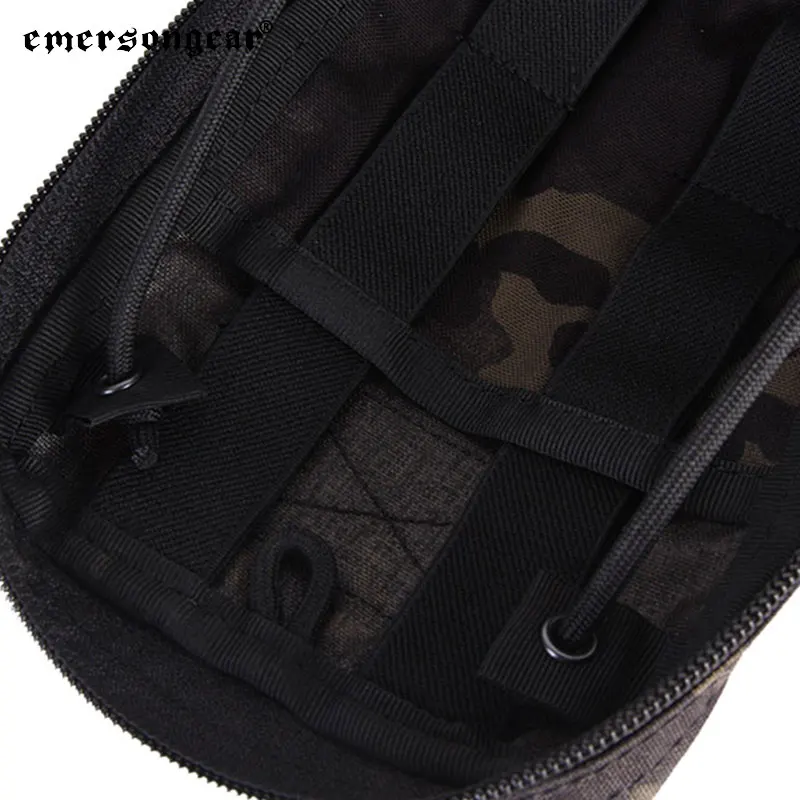 EmersonGear 18*12,5*7CM Utility Pouch es una bolsa de accesorios vertical completamente abierta. La bolsa de accesorios completamente abierta tiene una función de respuesta rápida. En caso de emergencia, la bolsa se puede abrir completamente tirando del exterior de la bolsa al instante, para lograr el efecto de activación rápida. La parte posterior de esta bolsa todavía está equipada con la cinta MOLLE de Velcro original de Emersonger, que se puede fijar en la bolsa con lana mágica en el interior.