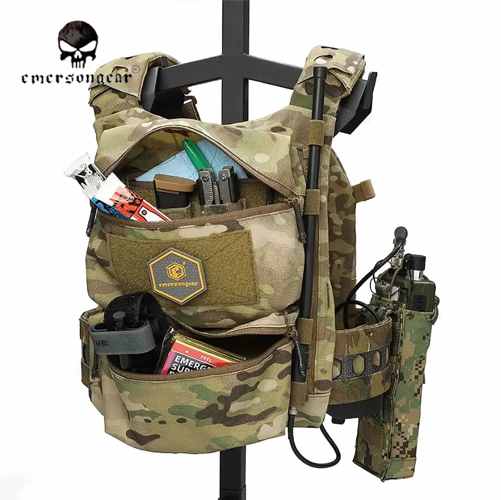 Emersongear táctico para estilo FRO V5 chaleco Panel trasero doble bolsa con cremallera en mochila bolsa multiusos caza senderismo combate Nylon EM9649