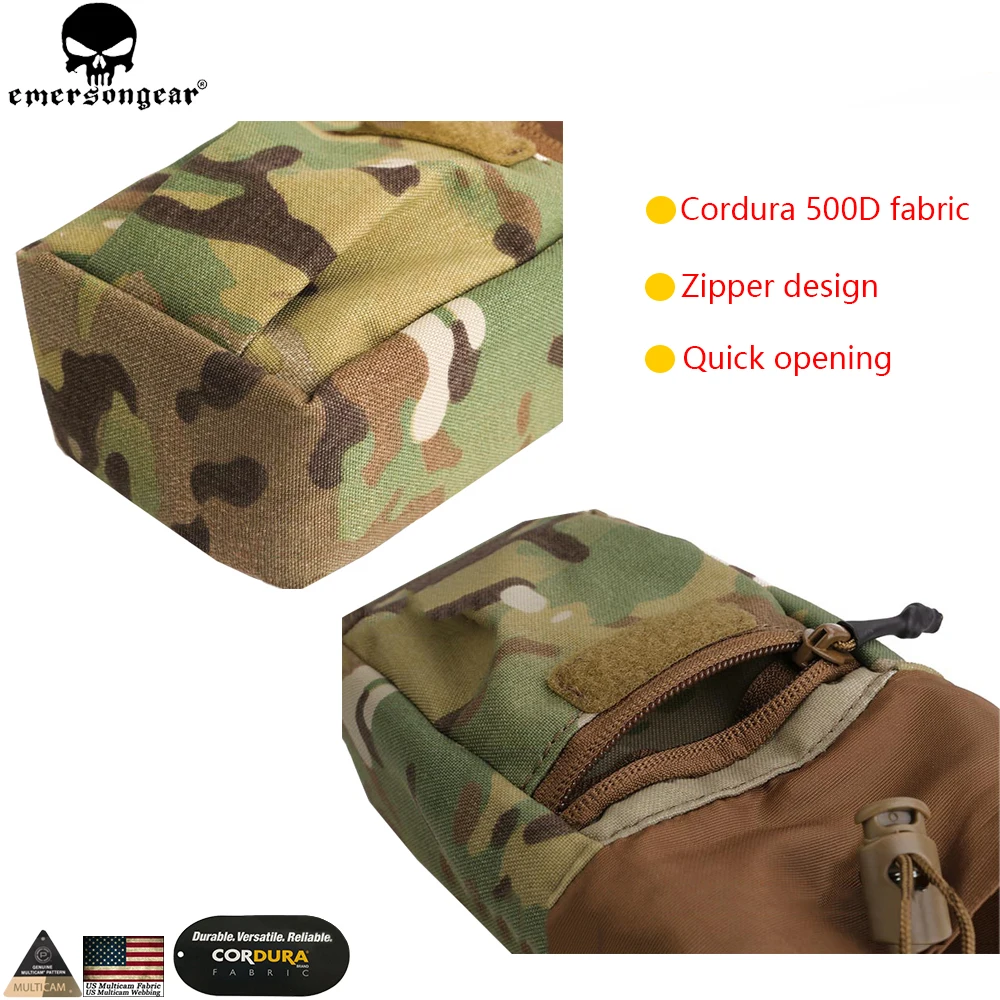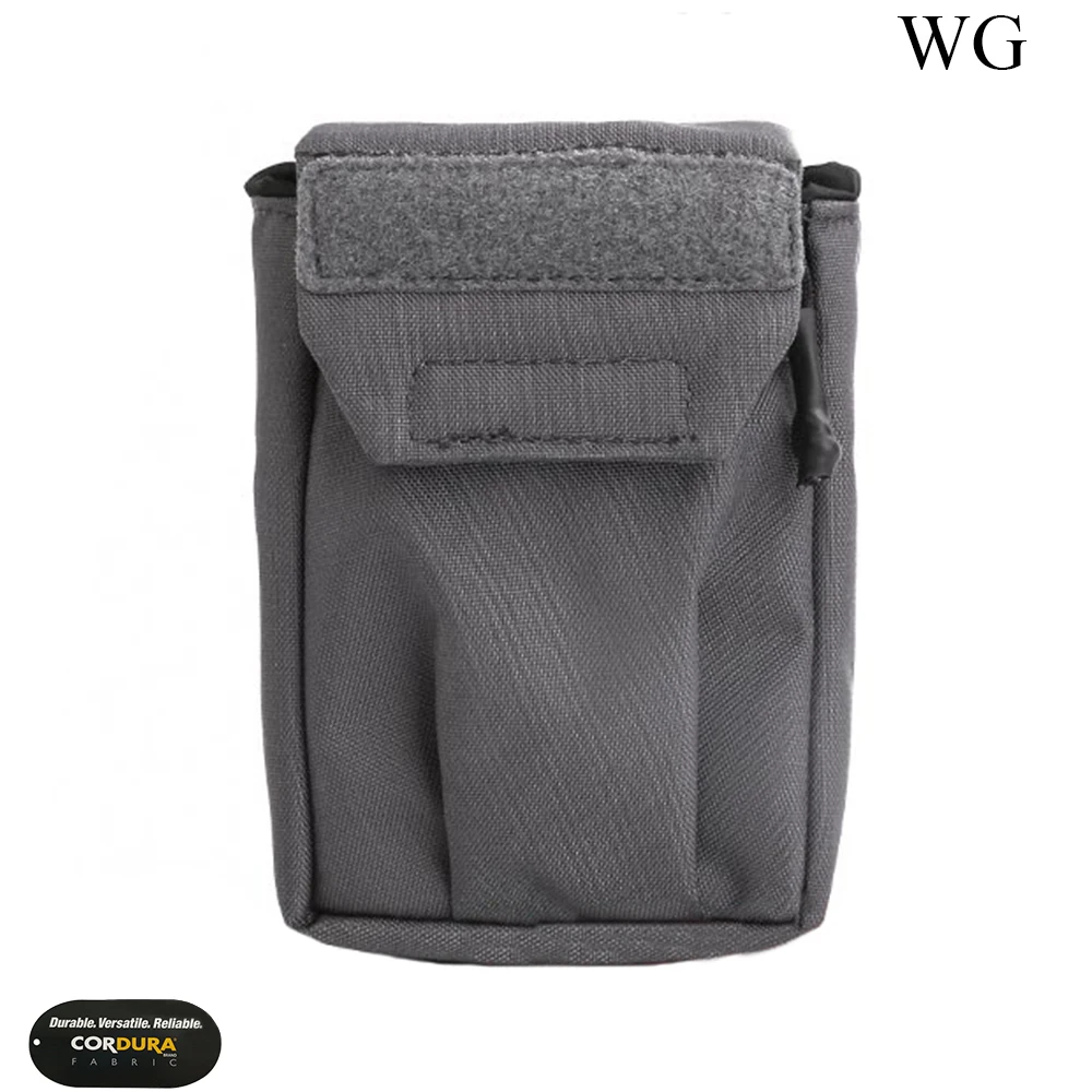 1) Tela Cordura 500D.2) Tamaño pequeño, fácil de transportar.3) Correa Molle en la espalda, se puede conectar al chaleco Molle y al terciopelo.