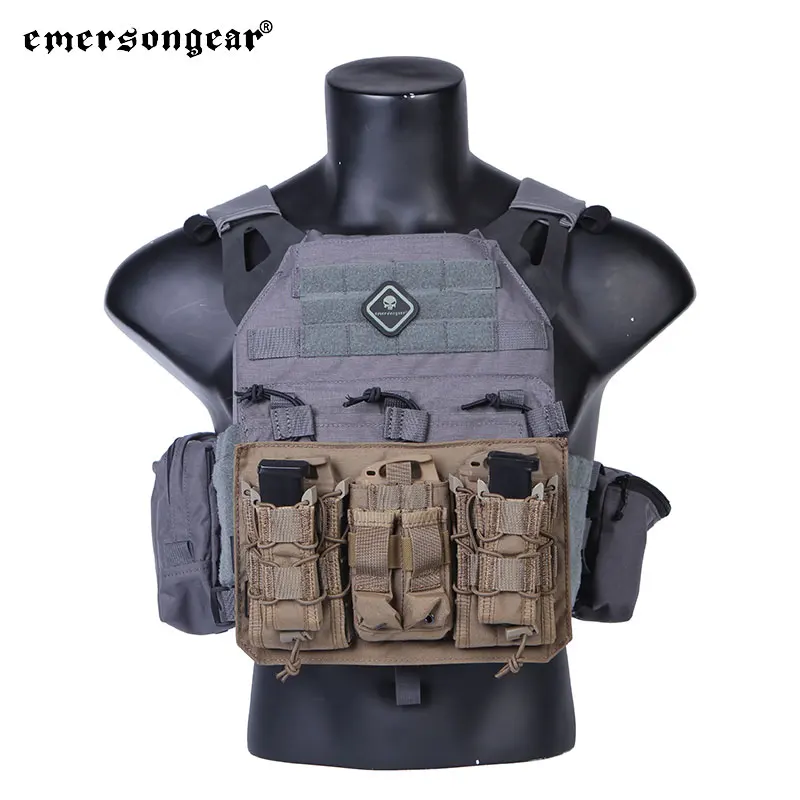 Emersongear 556 Bolsa para revistas de 9 mm Soporte de placa Molle Asastres modulares Panel frontal Pistola Bolsa triple Chaleco de nailon