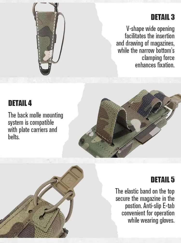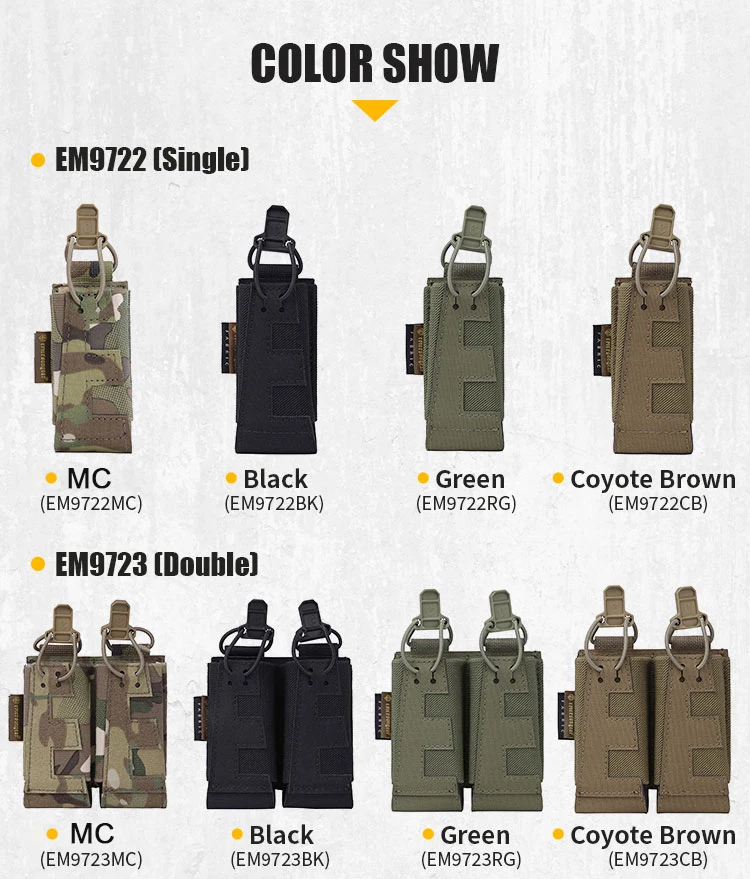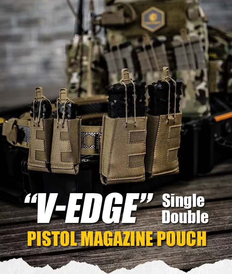 El paquete incluye: 1 bolsa para cargador de pistola simple/doble con borde en V Emersongear