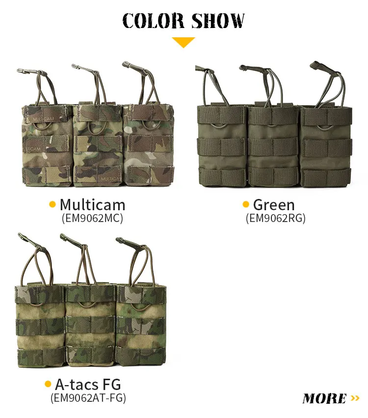 Emersongear 762mm Triple Open Top Magazine Pouch Mag Bag Rifle Panel Caza Senderismo Combate Trekking Nylon EM9062