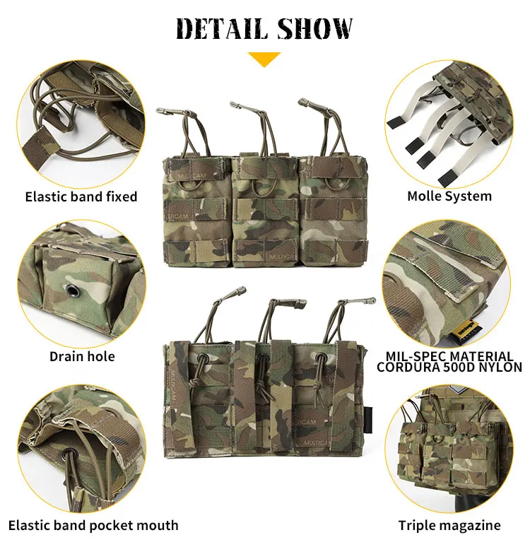 El paquete incluye: 1x Emersongear Tactical 7,62 Triple Open Top Magazine Pouch
