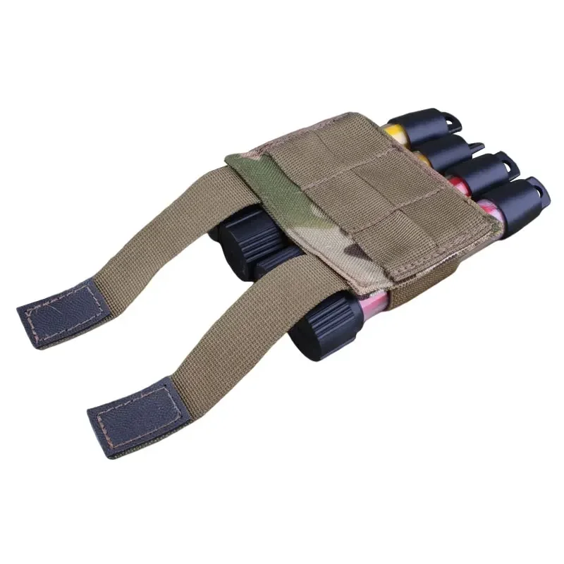 La bolsa se puede fijar sobre correas MOLLE con una longitud de 4 cuadrados en cualquier sección.Tiene un alto grado de modularidad y una variedad de colores.Se puede adaptar a cualquier tono de herrajes.Tiene una estanqueidad adecuada y es fácil de colocar y quitar. Se pueden fijar cuatro varillas fluorescentes al mismo tiempo, ahorrando espacio en el equipo y aumentando la flexibilidad de la combinación del equipo.Además de fijar la varilla fluorescente como se muestra en la figura, este producto también puede fijar cualquier accesorio táctico cilíndrico y artículo de tamaño similar.