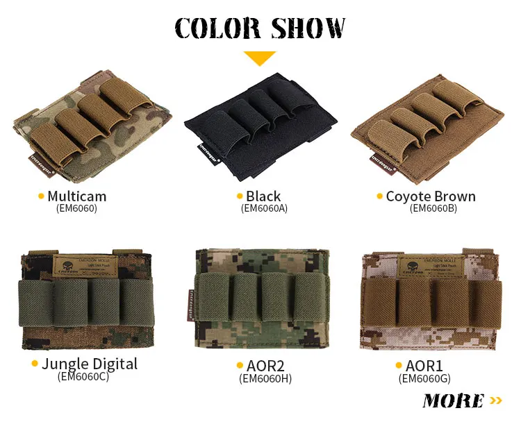 La bolsa se puede fijar sobre correas MOLLE con una longitud de 4 cuadrados en cualquier sección.Tiene un alto grado de modularidad y una variedad de colores.Se puede adaptar a cualquier tono de herrajes.Tiene una estanqueidad adecuada y es fácil de colocar y quitar. Se pueden fijar cuatro varillas fluorescentes al mismo tiempo, ahorrando espacio en el equipo y aumentando la flexibilidad de la combinación del equipo.Además de fijar la varilla fluorescente como se muestra en la figura, este producto también puede fijar cualquier accesorio táctico cilíndrico y artículo de tamaño similar.