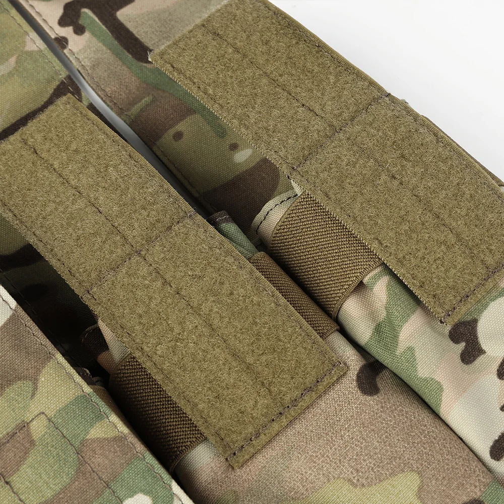 La bolsa de triple cartucho Emersongear LBT style 7,62 está hecha de tela Oxford 500D, y la tela tiene las características de resistencia al desgaste, resistencia a las salpicaduras de agua y resistencia a las manchas de aceite. Puede acomodar 7,62*6. Los orificios de drenaje están reservados en cada contenedor en la parte inferior del producto. Después de usar agua, el agua en el contenedor se puede eliminar rápidamente para reducir las lesiones del instrumento y la pérdida de energía física. La parte posterior del producto está equipada con un sistema de fijación extendida Molle, que se puede utilizar con productos relacionados con el sistema Molle.