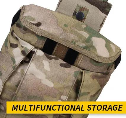 2.Sistema MOLLE: El sistema MOLLE en la parte posterior se puede fijar al sello de cintura o al cinturón con el sistema MOLLE, y la altura se puede ajustar según los hábitos del usuario.