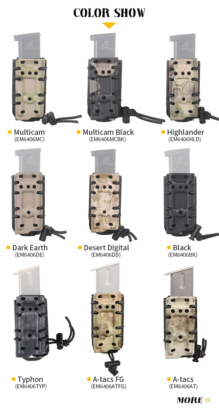 Emersongear Bolsas para revistas de 9mm Clip para cinturón Bolsa Molle de plástico Softshell G-code Style Scorpion Pistol Single Mag Carrier