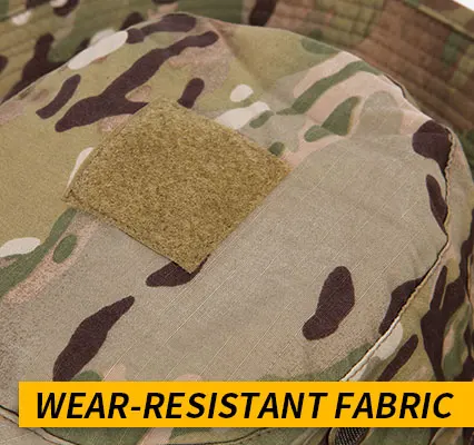 2.Cinta de camuflaje: hay un círculo completo de correas MOLLE en el exterior del sombrero para facilitar la fijación de la vegetación y otros desechos para lograr el efecto de camuflaje.