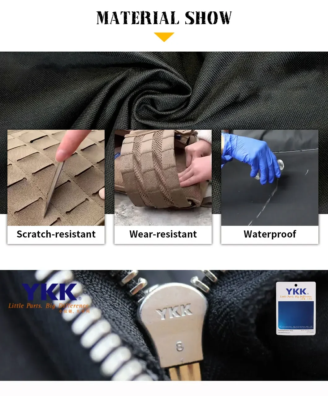 2.Antiarañazos y resistente al desgaste: hecho de nailon 500D + tela Oxford, con una correa de tracción fija especial, la fuerza de fijación es más estable
