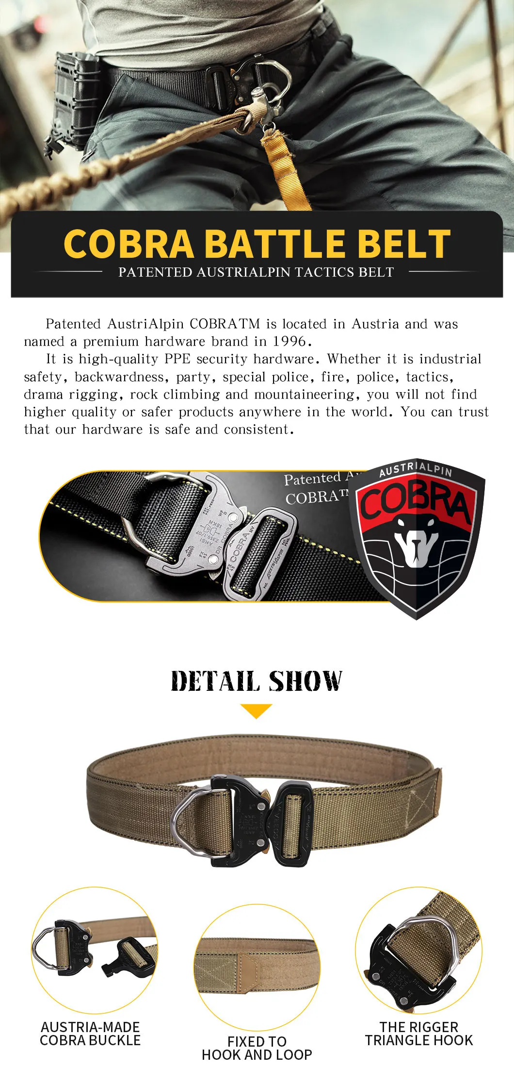 EmersonGear BuckleCobra D-Ring Riggers Belt está hecho de correas con regulaciones importadas, que tienen las características de resistencia a la abrasión, resistencia al aceite, etc.La hebilla del cinturón adopta "BuckleCobra" del origen exterior austriaco "cierre BuckleCobra, ¡su tensión horizontal puede alcanzar 1,8 toneladas!El ancho del cinturón es de 1,75 pulgadas, lo que puede ser compatible con la mayoría de los pantalones tácticos y de cercanías.Ha logrado un equilibrio perfecto en capacidad de carga y comodidad.El cinturón está hecho de costura de precisión para cumplir con los requisitos de uso de alta resistencia.El automóvil en el interior del cuerpo del cinturón tiene una cara completa de presilla, que se puede utilizar como sello de cintura táctico junto con el cinturón interior con presilla de doble cara.