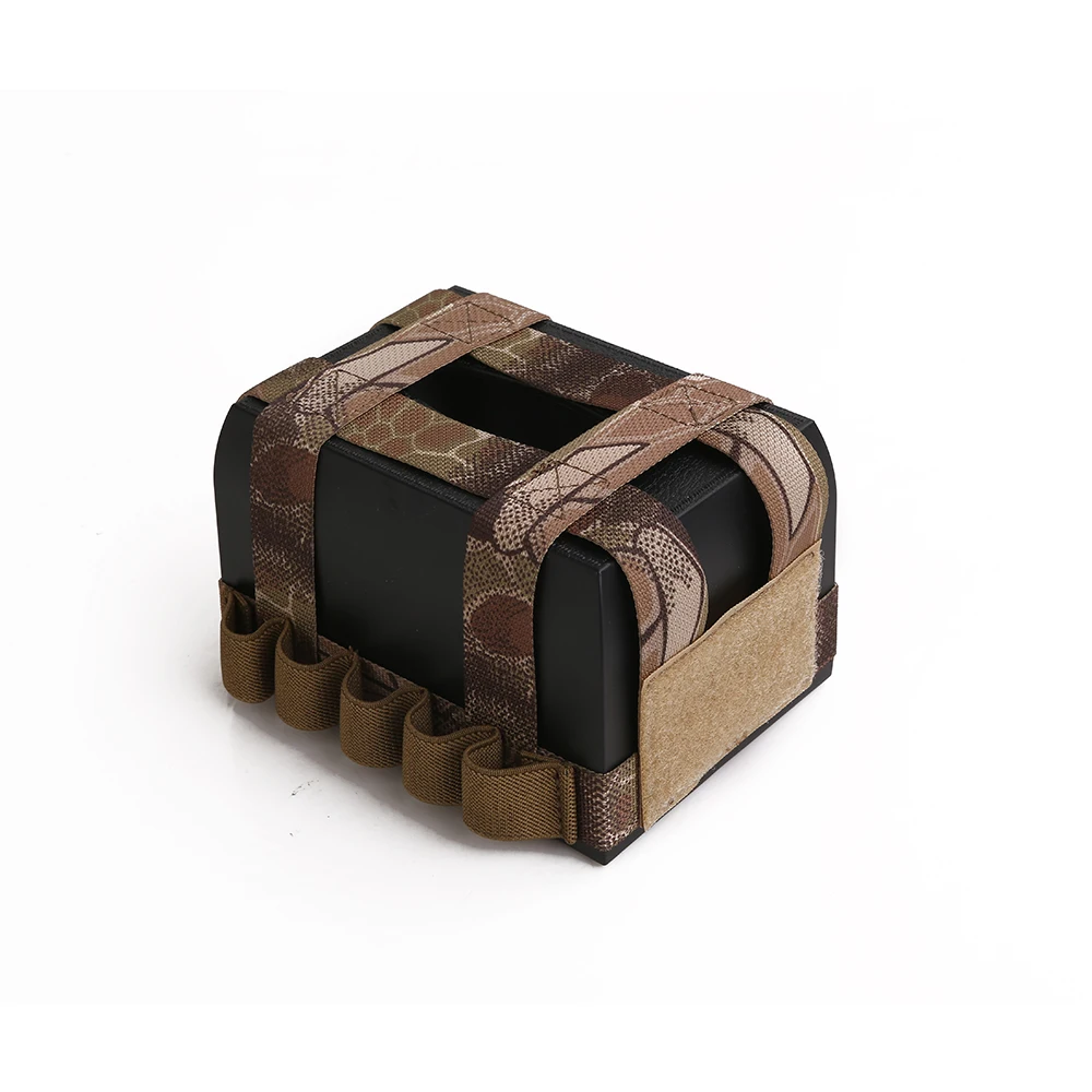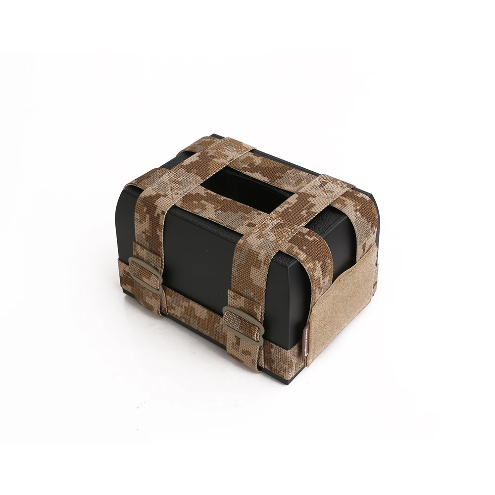 1. El material utiliza correas de nylon de alta resistencia, que tienen una fuerte resistencia a la tracción y proporcionan un mayor soporte de fijación para la caja de pañuelos. Presentamos elementos de camuflaje para hacer que la caja de pañuelos monótona original sea animada y personalizada.