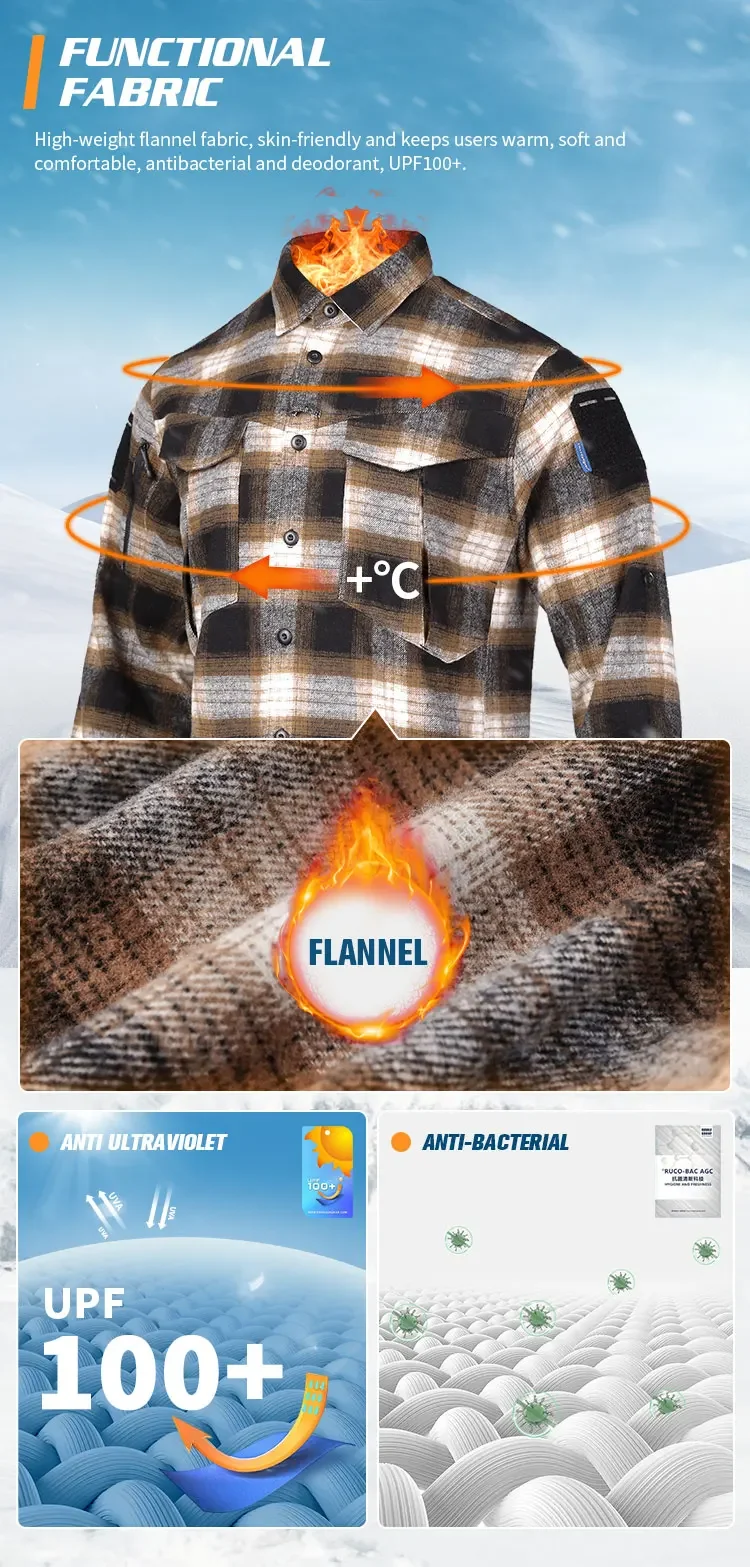 1.Tejidos funcionales: tejido polar Farah de alto peso, agradable para la piel y mantiene a los usuarios abrigados, suaves y cómodos, antibacterianos y desodorantes, UPF100+.