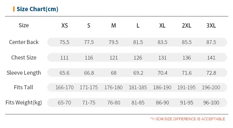 Talla: XS / S / M / L / XL / 2XL / 3XL