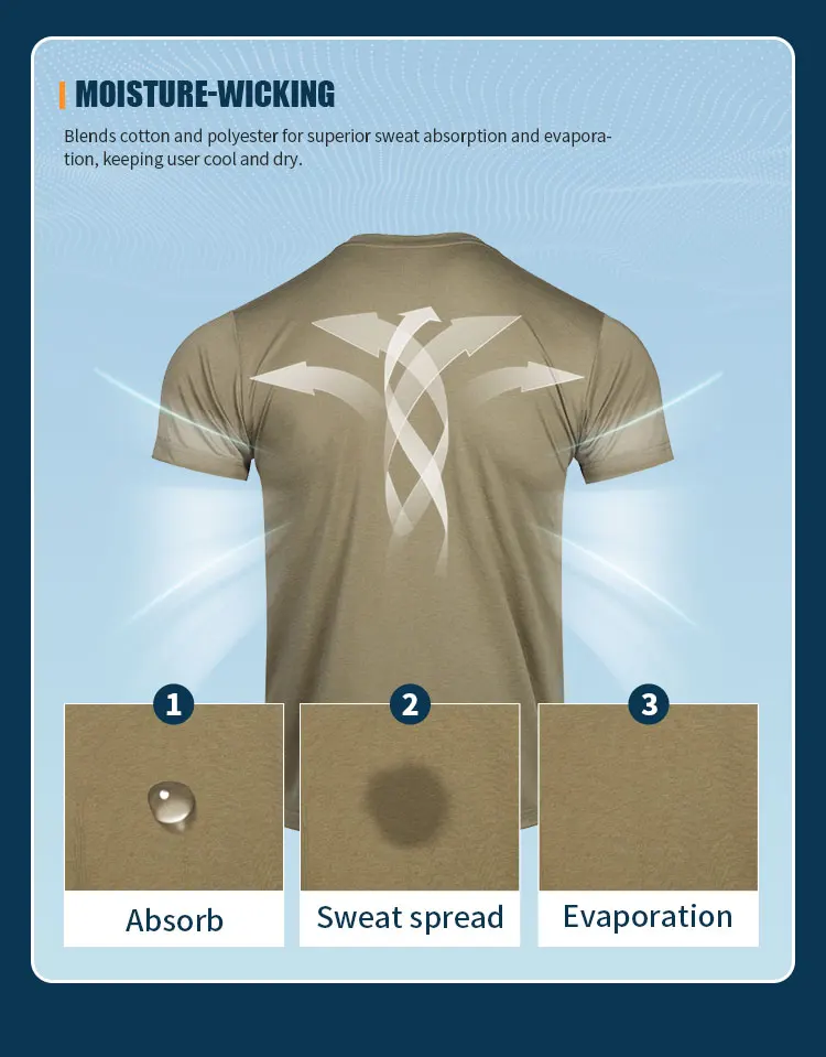 Absorbe la humedad: mezcla algodón y poliéster para una absorción y evaporación superiores del sudor, manteniendo al usuario fresco y seco.