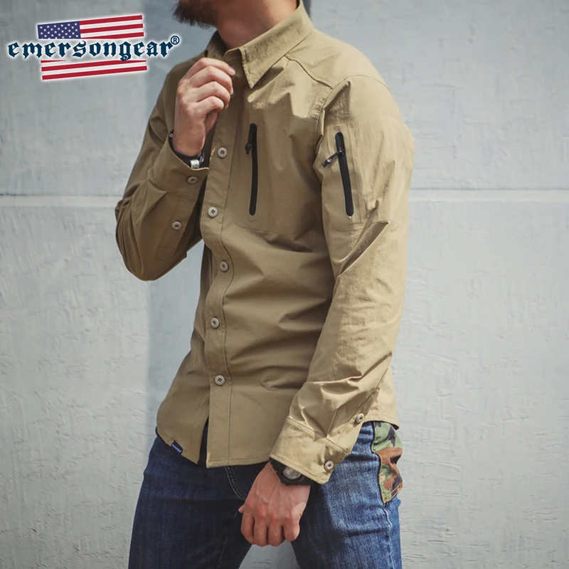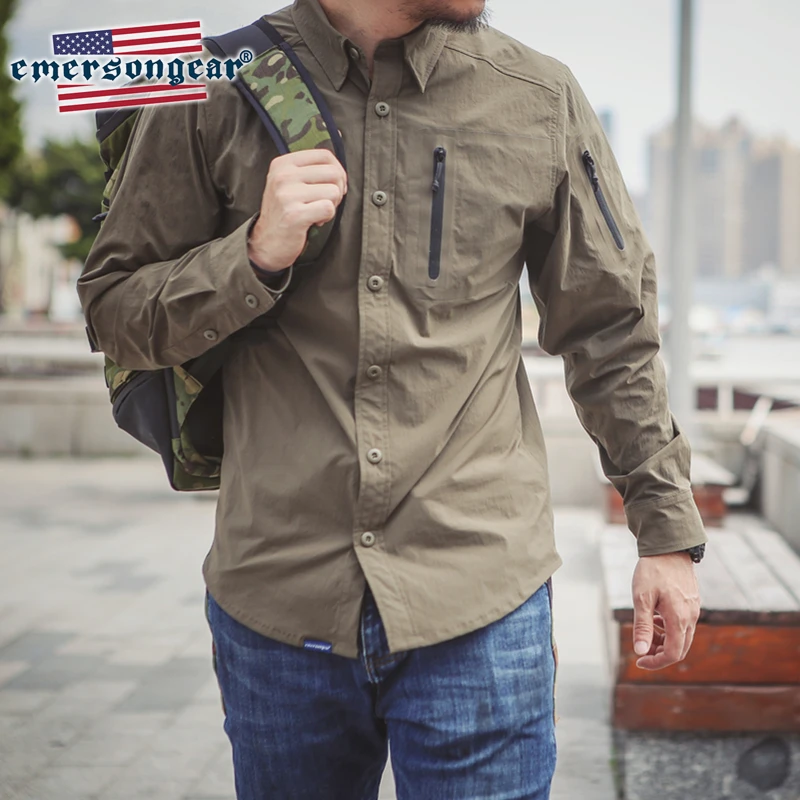 Emersongear Blue Lable Triple Tech Tac-Shirt Mens T-shirt Long Sleeve Shirts Commuter Urban Casual Camping Hiking Black Nylon