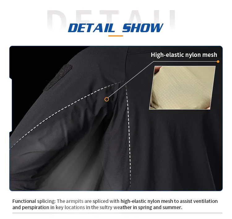 2. Function splicing: High elastic nylon mesh is spliced under the armpit to assist in ventilation and sweat wicking in key areas during hot and humid weather in spring and summer.