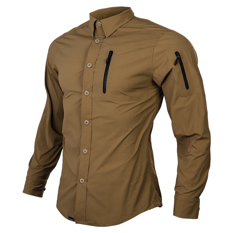 Emersongear Blue Lable Triple Tech Tac-Shirt Camisas de manga larga para hombre Commuter T-shirt Pesca al aire libre Caza Senderismo KH Nylon