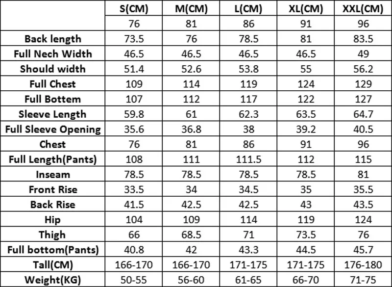 2.Ajustable: la posición de los puños de la chaqueta y los puños de los pantalones se puede ajustar a la posición más adecuada según los hábitos personales.
