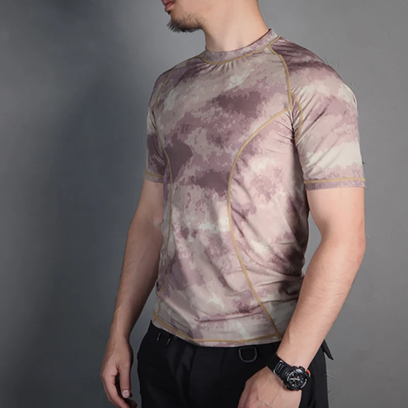 Emersongear Tactical Skin Tight Base Layer Camo Running Shirts Camouflage Shorts Sleeve Outdoor Sports Sweat-Wicking T-Shirt