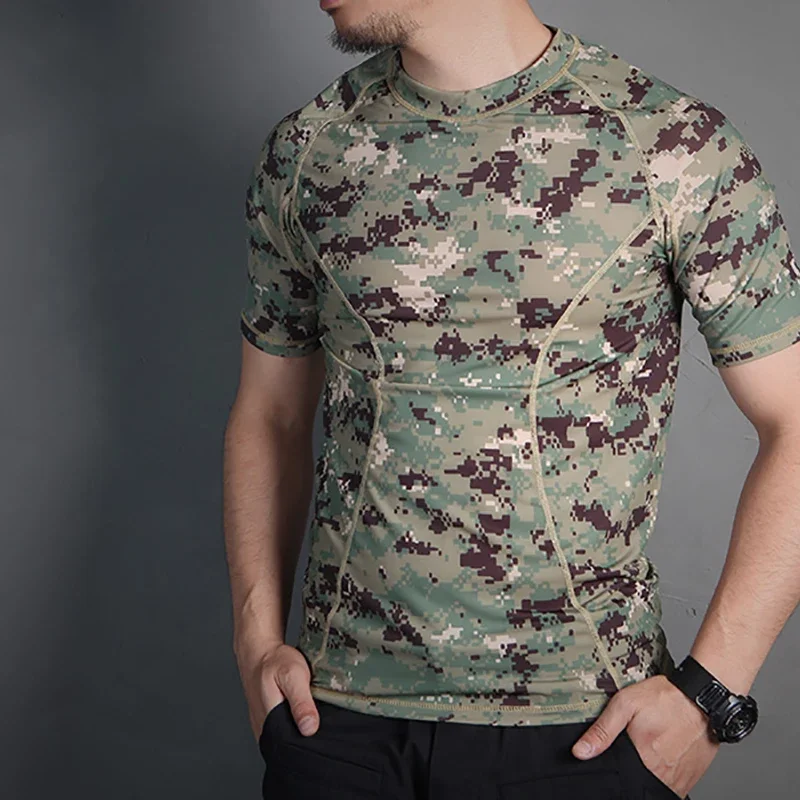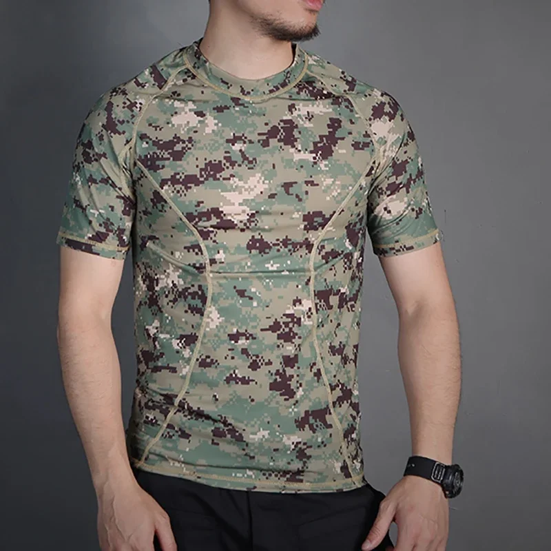 Emersongear-Camisetas de camuflaje para correr, capa base ajustada de piel táctica, pantalones cortos de camuflaje, camiseta absorbente de sudor para deportes al aire libre