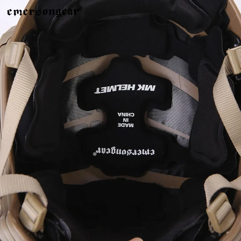 Emersongear MK Style Helmet es una réplica perfecta, hereda los detalles y funciones del original. El casco está equipado con un material de revestimiento de doble capa de rebote lento, que se puede ajustar a un Estado cómodo de acuerdo con la forma de la cabeza individual. Equipado con el nuevo riel de guía lateral del sistema m-lok, puede configurar los mismos accesorios y equipos del sistema. El diseño de la suspensión adopta el último sistema de suspensión de liberación rápida, por lo que los usuarios pueden cambiar rápidamente la suspensión del casco retirado.