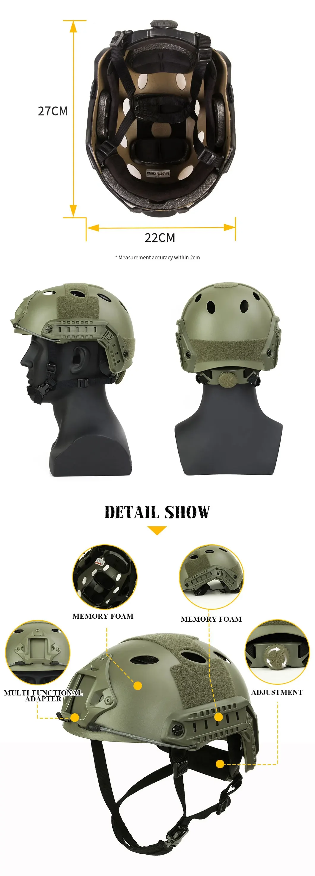 NOTA: Casco SÓLO para juegos de airsoft o deportes al aire libre, y no tiene ninguna certificación