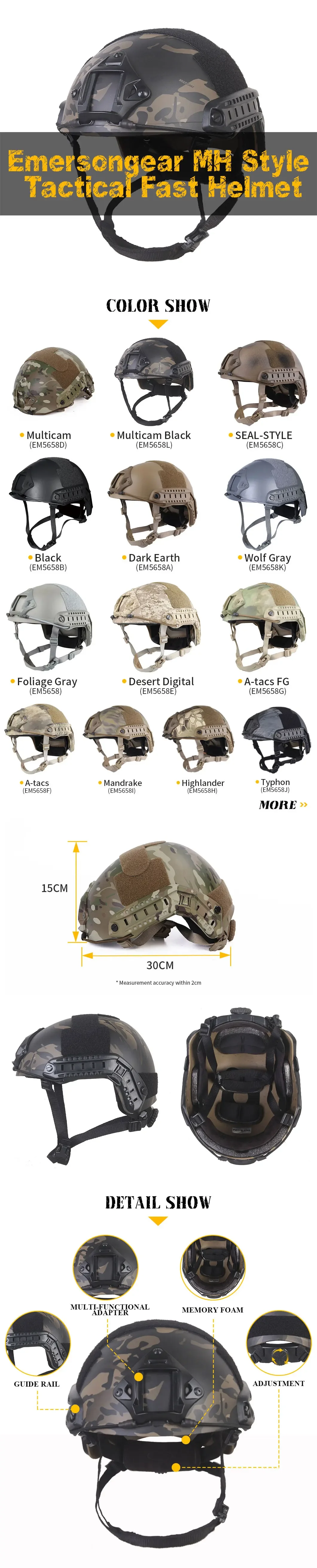 Emersongear casco FAST tipo MH casco protector de cabeza ajustable combate caza juego de guerra senderismo casco de ciclismo ABS EM5658